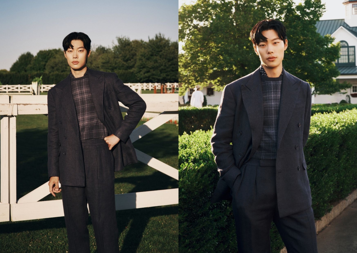 柳俊烈這回也出現 Ralph Lauren 2025 春季大秀上,身穿圓點襯衫、格紋針織衫和深色毛呢西裝外套、長褲,不過於高調,以同色系、不同材質和印花做搭配,展現品牌低調層次奢華感。