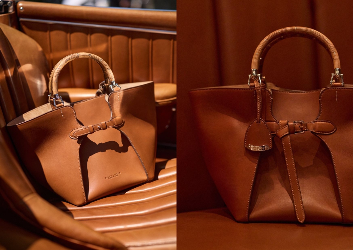 本季全新包款「The Ralph」在這次大秀中首次亮相,秀後更率先由品牌大使 Krystal 鄭秀晶揹上!這款包靈感源自 Ralph Lauren 先生對汽車的熱忱,模仿古董汽車的內飾打造,以柔軟皮革搭配拋光金屬與 Radica 木製配件,彰顯精湛的義式工藝。