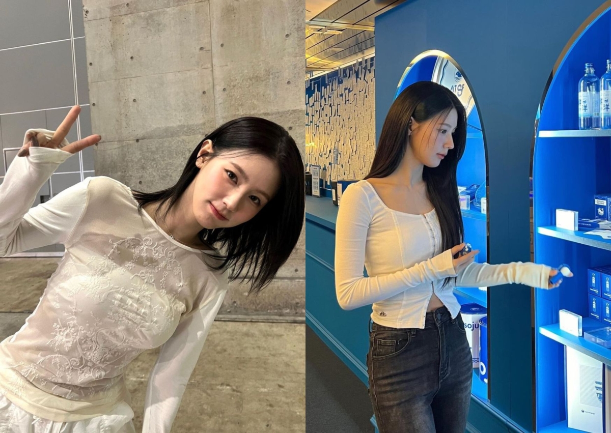 張員瑛的社群離不開針織元素,可見她有多愛這材質單品!張員瑛內搭一件打底衫,外搭細肩吊帶洋裝,頗有鄰家小女孩氣息。或是穿白色打底衫搭牛仔褲,這套採用兩件式設計,在同個材質中做出剪裁層次感,顯得不無聊。