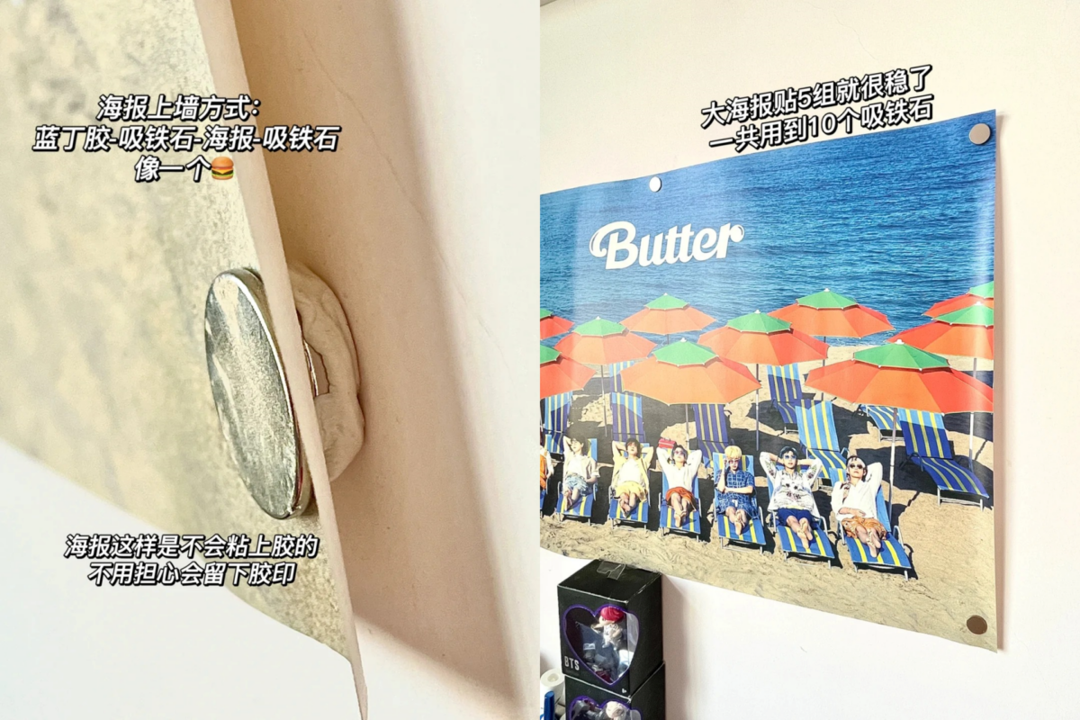 只要有在追星,多多少少都會買專輯支持偶像,拿到海報後你是會收起來好好保存,還是會想貼在牆上欣賞呢?想展示裝飾房間時,是不是每次都被「要用什麼方式貼起來」而感到困擾,海報撕下來總是會留下膠印、破損,甚至牆壁也遭到傷害,之後都不敢再貼海報了?編輯就替大家蒐集了2種「貼海報、手幅不傷海報、牆面」的小撇步,還可以解決貼起來邊邊翹起來的問題!