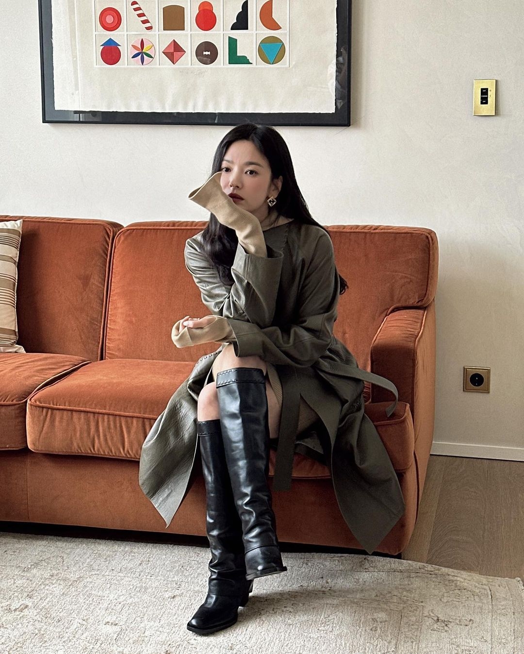 結束 FENDI 2025 春夏大秀後,宋慧喬接著換上另一套更輕鬆浪漫的穿搭,身穿 FENDI 2024 秋冬系列 Look 19 的墨綠色皮革大衣、米棕色長袖內搭,腳踩黑色長靴,露出一雙白皙長腿,一樣的長髮髮型,與看秀時的造型做出區別,整體穿搭更顯女人味。