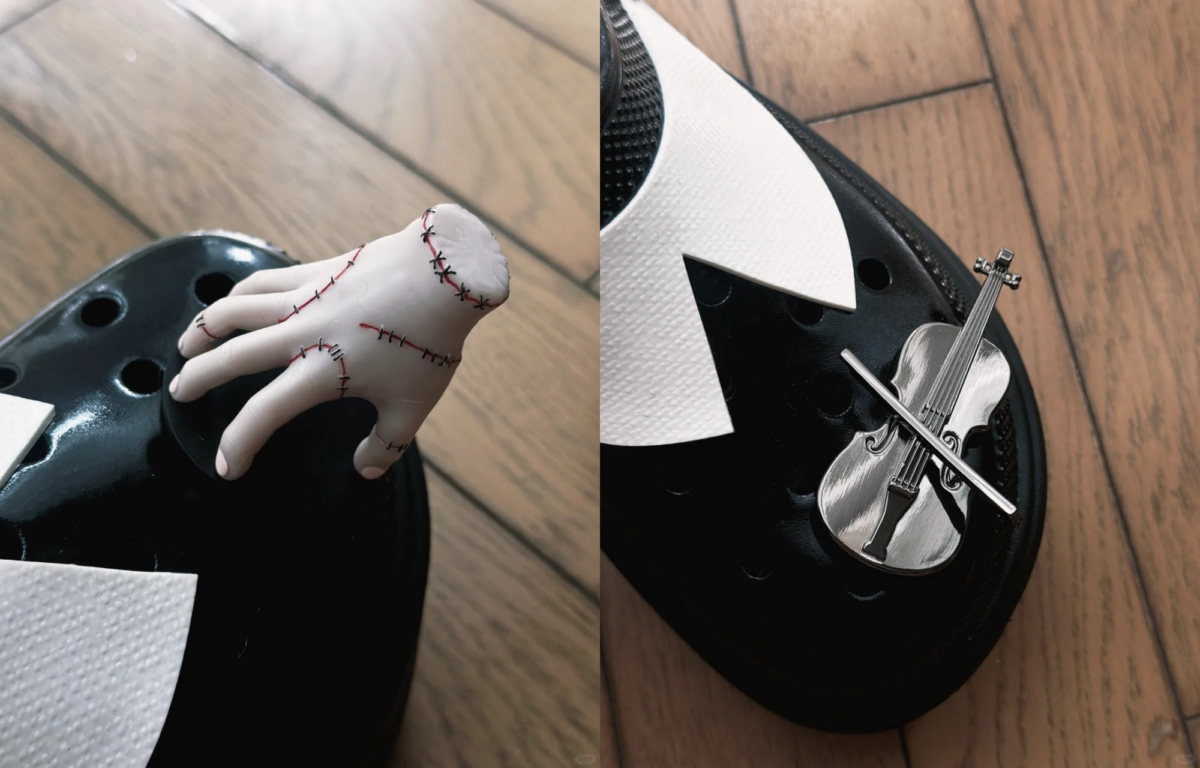 不只如此,還有推出星期三最愛的大提琴與得力夥伴「小手」的裝飾鞋扣!超精緻的造型有亮晶晶金屬感,小手的縫線造型也都還原出來,扣在鞋上就像是爬在腳上一樣超級有趣可愛~