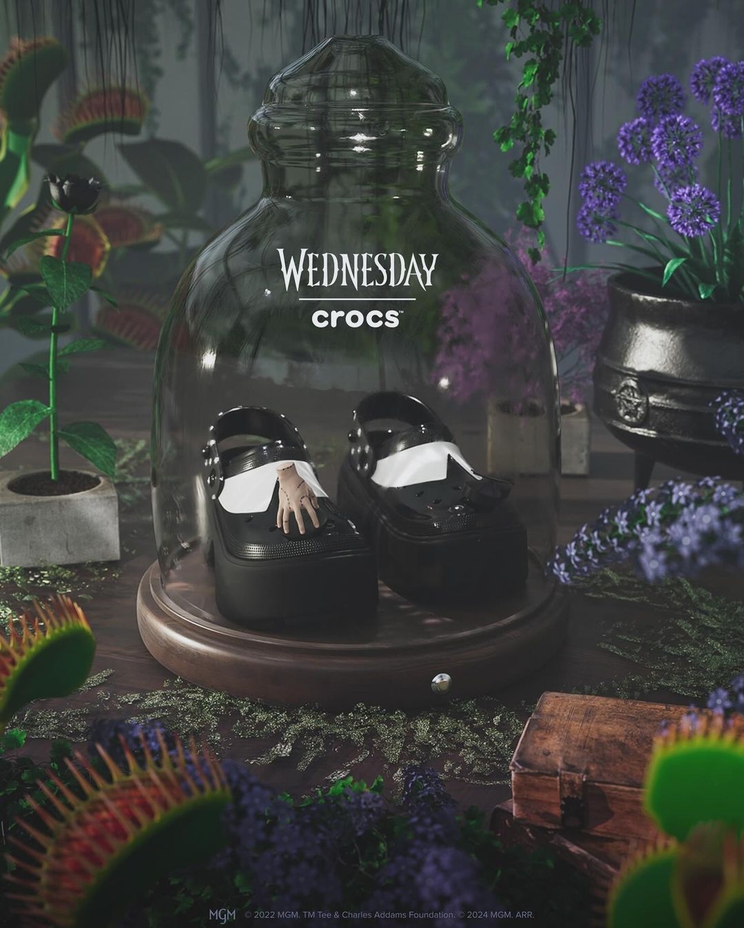 改編自《阿達一家》的Netflix恐怖喜劇影集《Wednesday星期三》,在2022年播出後成功獲得迴響,經典獵奇的風格引起世界風潮大受好評,今年正式宣布開拍第二季,讓影迷相當興奮。而在新的一季尚未上映前,就先給大家驚喜!《星期三》特別與Crocs聯名搶在萬聖節推出限定洞洞鞋,哥德暗黑款式加上「小手」鞋扣的設計,忍不住讓大家瘋搶~