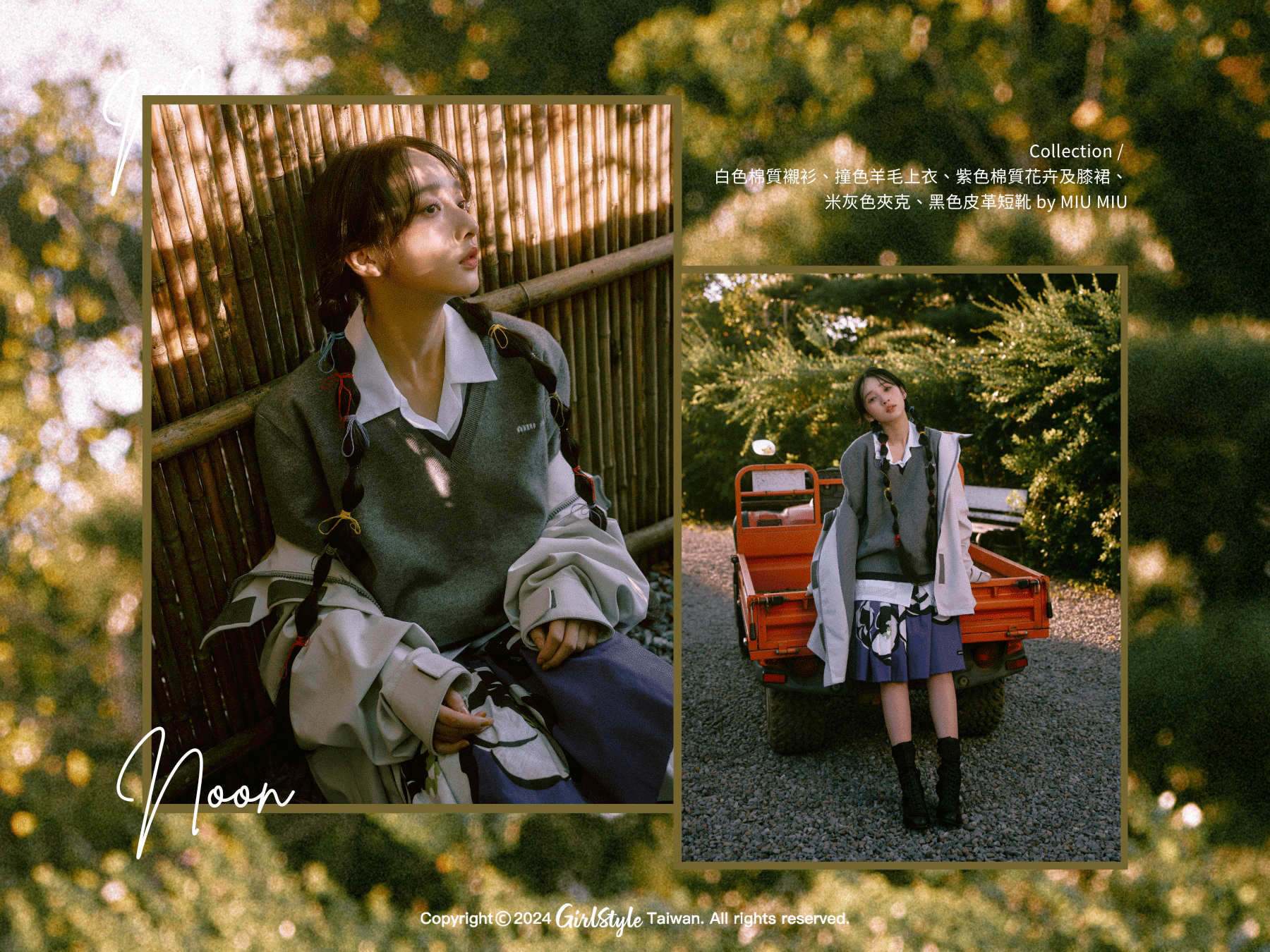 李沐始終抱持著不設限的心態,除了體現在熱愛的戲劇表演上,也反映在她勇於嘗試的時尚面,無論是踏上紅毯的典雅禮服,或是私下日常居家的穿著,從清純、優雅浪漫、活潑可愛到叛逆時髦的造型都能完美詮釋,這次穿上 MIU MIU 白色棉質襯衫疊搭撞色羊毛上衣,學院風展現出李沐的青春樣貌,紫色棉質花卉及膝裙似乎是代表著她心中的小怪物,嬉皮、逗趣又俏皮。