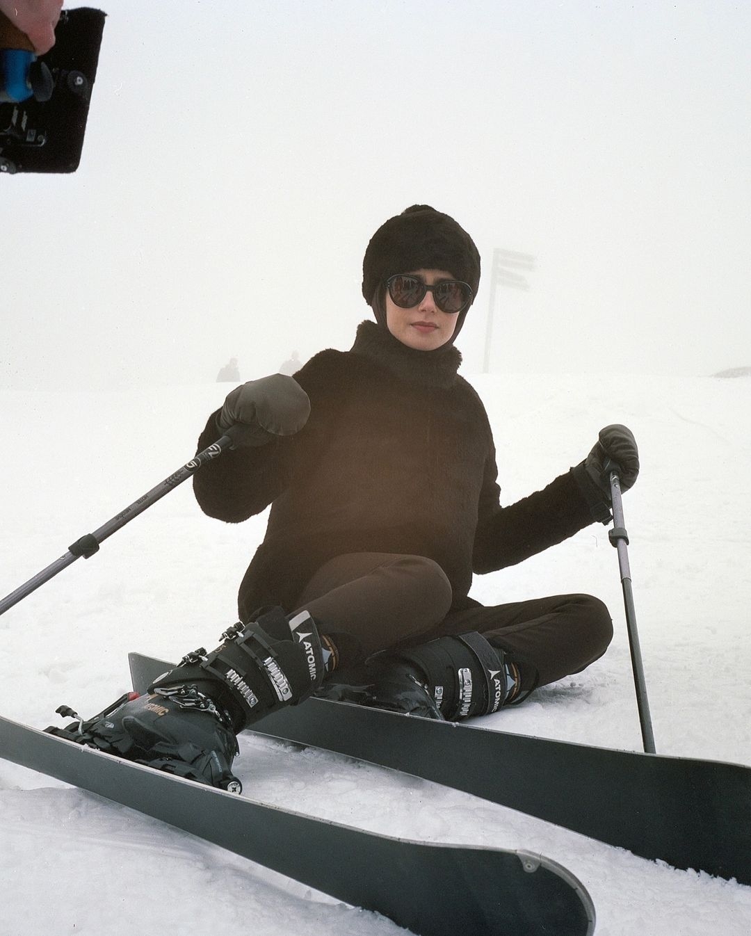 這一幕一定讓許多人都印象深刻,就是艾蜜莉被丟包在滑雪場上,憤而離場並且正式決定與加百列斷開的片段,但更值得一探究竟的就是艾蜜莉這身看似低調卻充滿的涵義與故事性的造型,完美復刻了奧黛麗赫本在 1963 年浪漫喜劇電影《謎中謎 Charade 》滑雪場造型,全身棕色毛料服裝搭配同色毛帽、墨鏡。