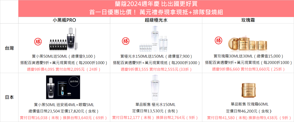 台灣vs.日本殘酷比價!2024蘭蔻週年慶首一折扣真是太香了