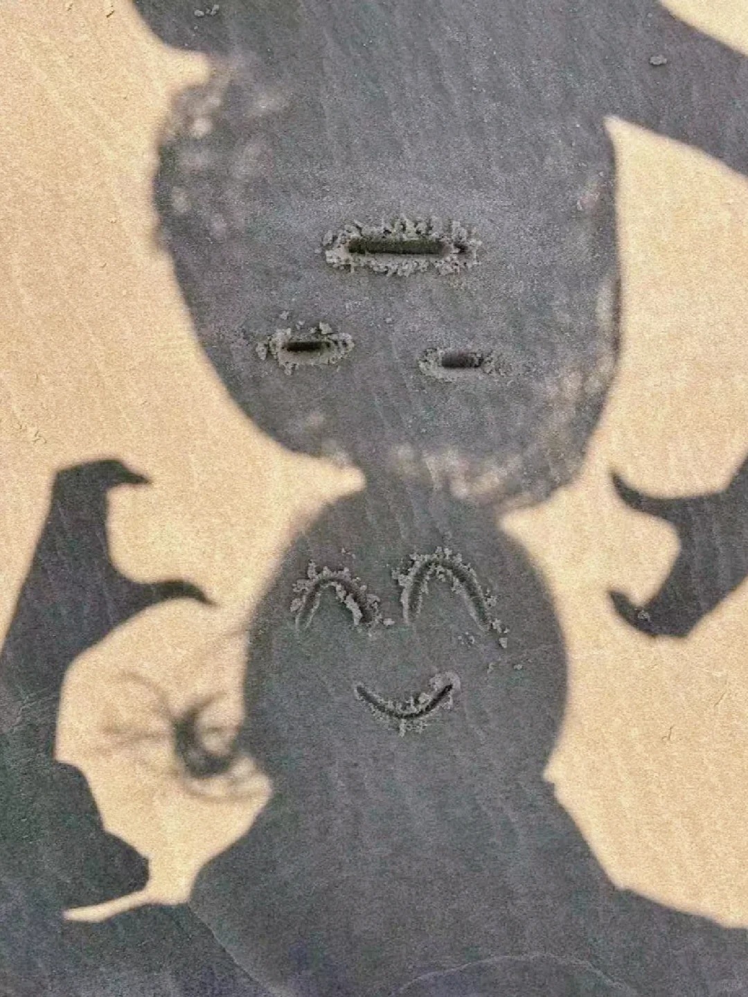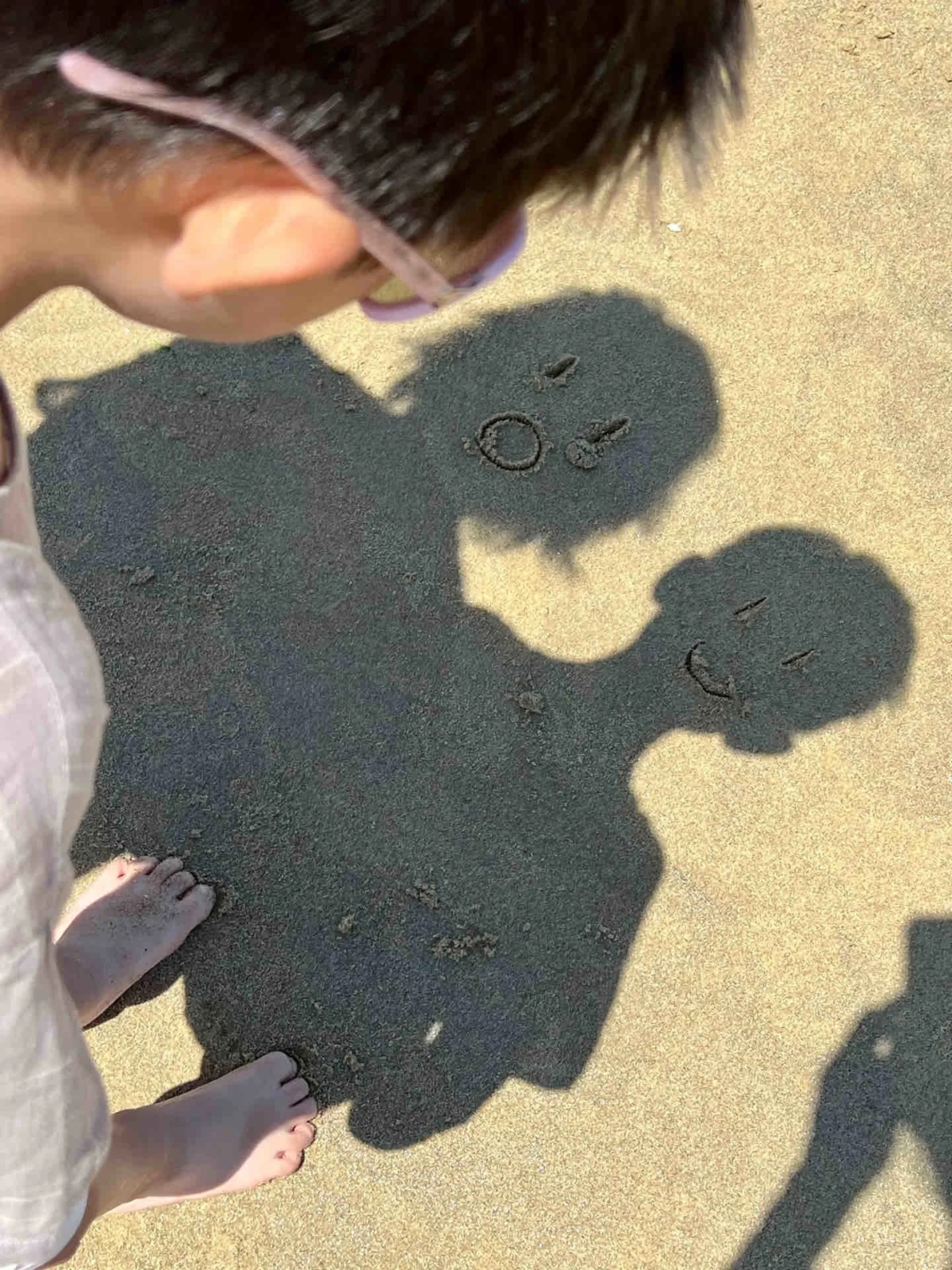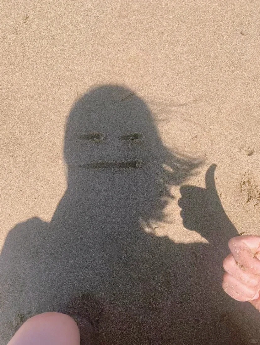 風太大沒關係!社群流行的「沙灘不露臉」拍照方式,拍下自己畫臉的影子有趣又搞笑