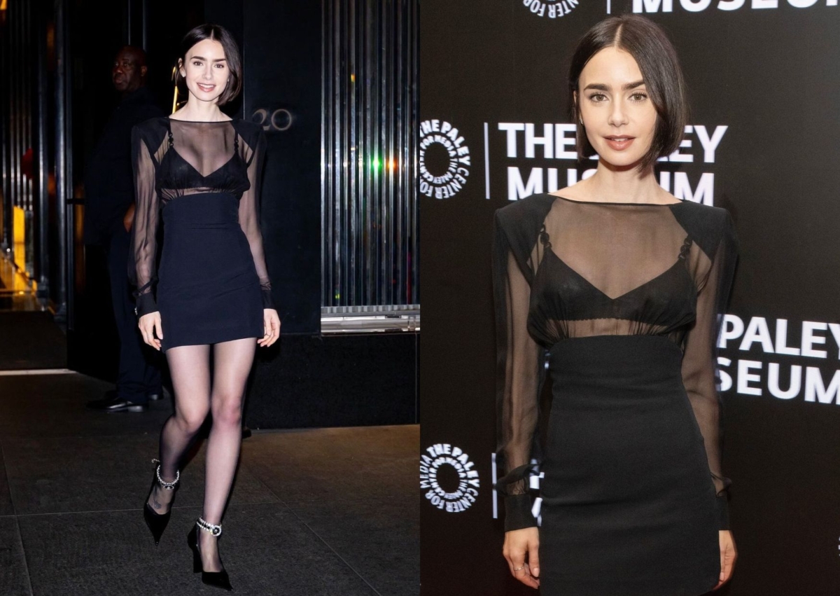 《艾蜜莉在巴黎》Lily Collins 七套 All Black 紅毯造型!黑色透膚、網紗或天鵝絨,各種異材質「黑色穿搭」範本