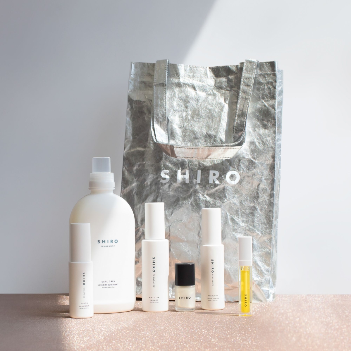 - 【限定】 SHIRO FRAGRANCE 擴香 - 和紅茶 180ml、白茶香水 10ml、柚子補水精華噴霧 120ml、酒粕米糠面膜(3片裝)、昆布精華液 60ml、禮物手提袋