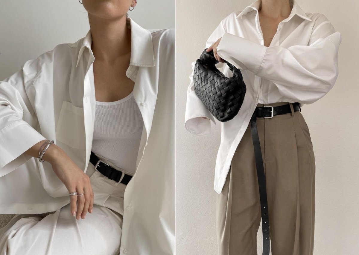 經典單品則是指那些經得起時間考驗的衣物,例如白襯衫、牛仔褲、風衣、簡約連身裙等,這些所謂「永不退流行」的單品,如棉、羊毛或真絲,確保它們能夠長久使用且保持良好的形狀。透過這個公式,只需要選擇2、3件基礎色調的經典單品即可輕鬆搭配出門,例如一件白襯衫搭配牛仔褲或西裝褲,再加上一雙黑色樂福鞋、高跟鞋或平底鞋,就能營造出優雅而不失俐落的日常造型。