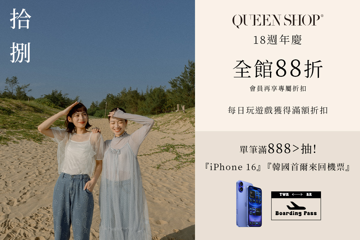 記得十八歲的你正在做什麼呢?是聽著耳機坐公車通勤,下課後趕著補習、還是週末跟同學約在西門町逛街吃剉冰……。台灣原創服飾品牌QUEEN SHOP今年十八歲了,隆重迎來品牌成立18週年成年禮,感謝粉絲的一路陪伴,QUEEN SHOP品牌面貌也更加多采多姿。今年,以「旅行」為主題,QUEEN SHOP將陪伴每一位時尚愛好者踏上一段充滿驚喜與回饋的旅程。從9月30日起,18週年慶活動正式出發,全館多項獨家優惠、限量好禮和豪華抽獎等你來參與!
