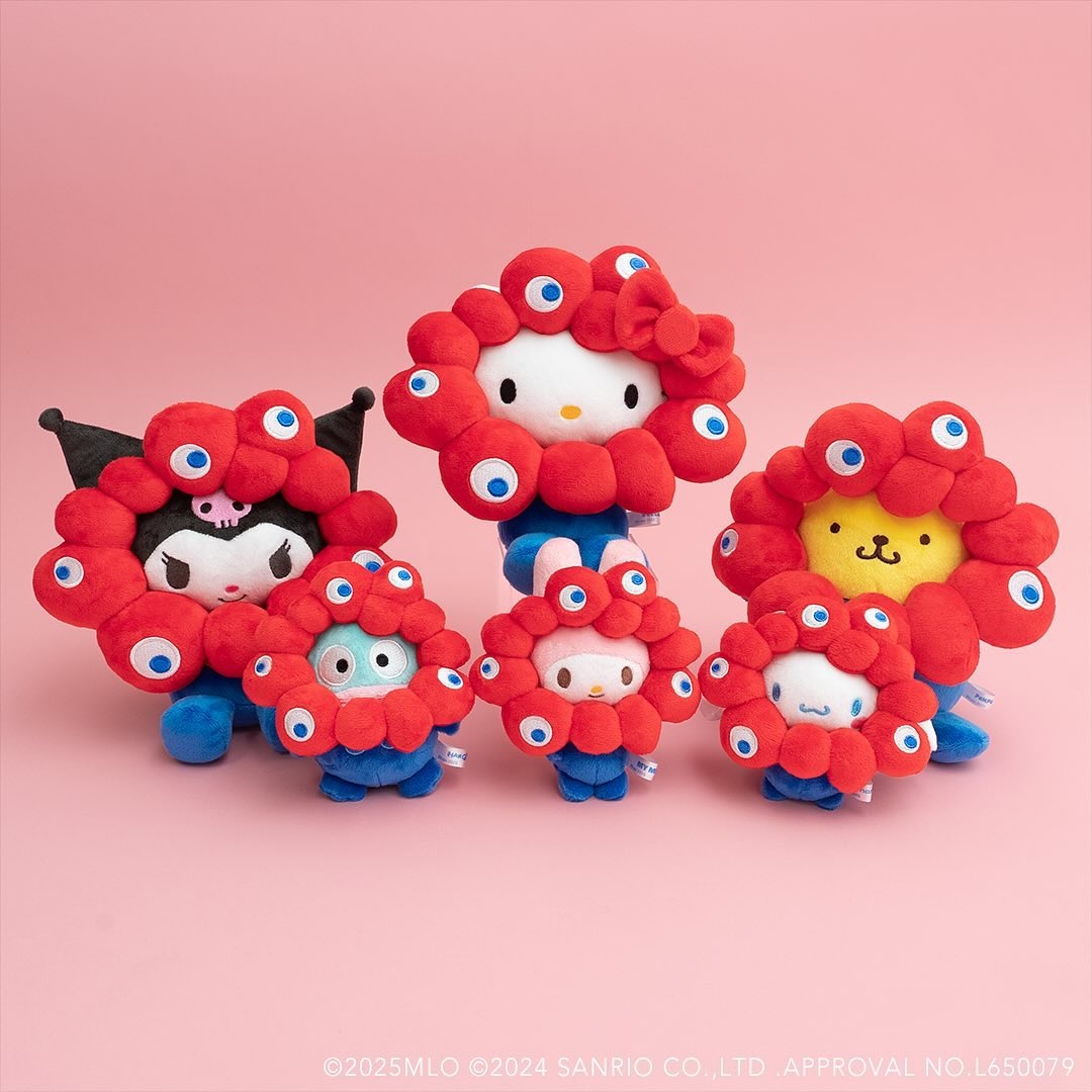 不只如此,三麗鷗角色們還換上有眼球尾巴的藍色衣服,將自己完全融入成脈脈的樣子,除了Hello Kitty沒有放棄她的招牌紅色蝴蝶結XD 超特別的聯名,立刻引起大家的關注,造型雖然有種說不出的獵奇,但看久了又有股醜萌的可愛感,讓人莫名有想收藏的衝動(笑)。