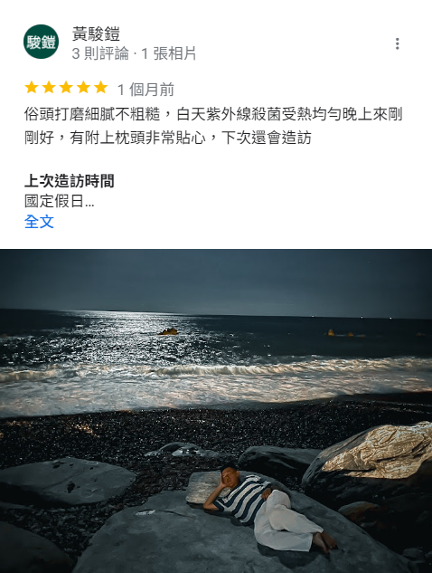 從Google的評論上看到是滿分5星的好評就知道大家有多推一顆超好躺ㄉ俗頭了~下次有機會去花蓮的朋友也可以去試躺看看,感受一下「5星級第一海景房」吧!