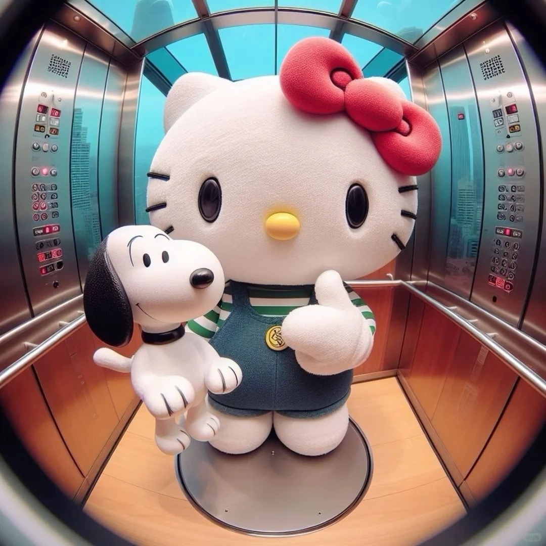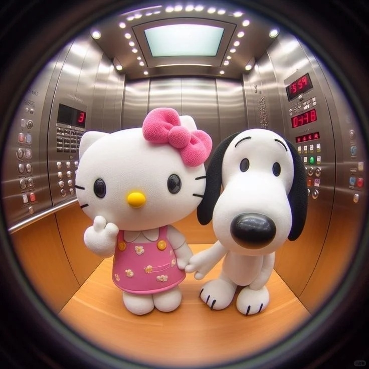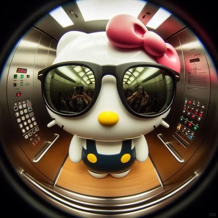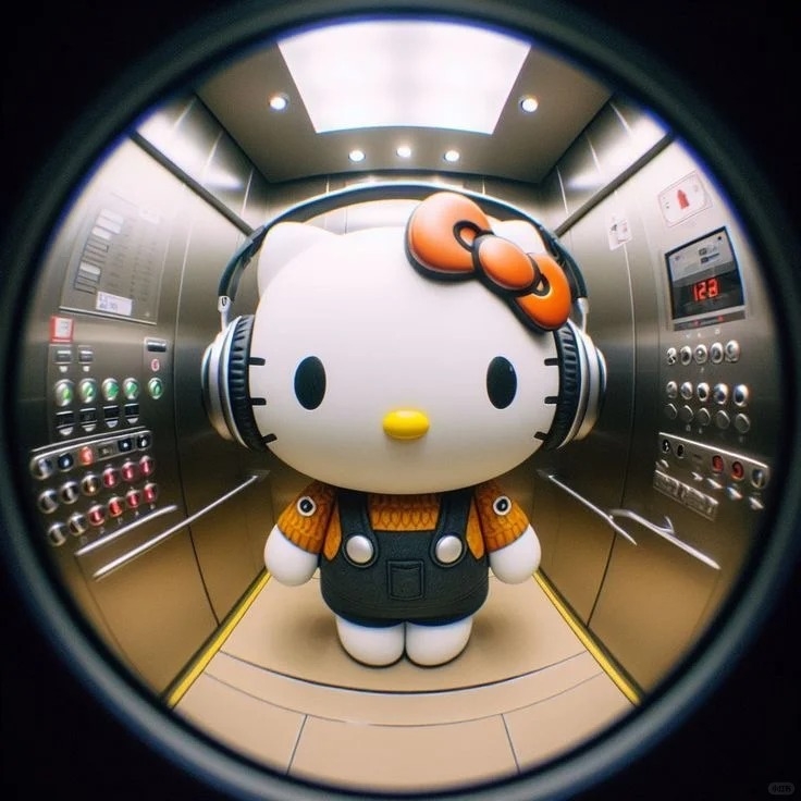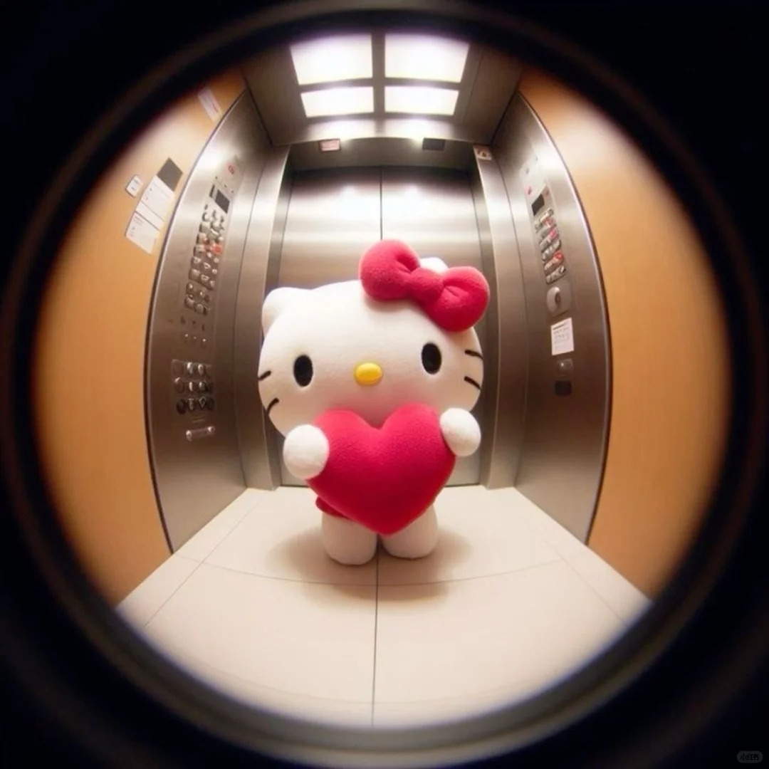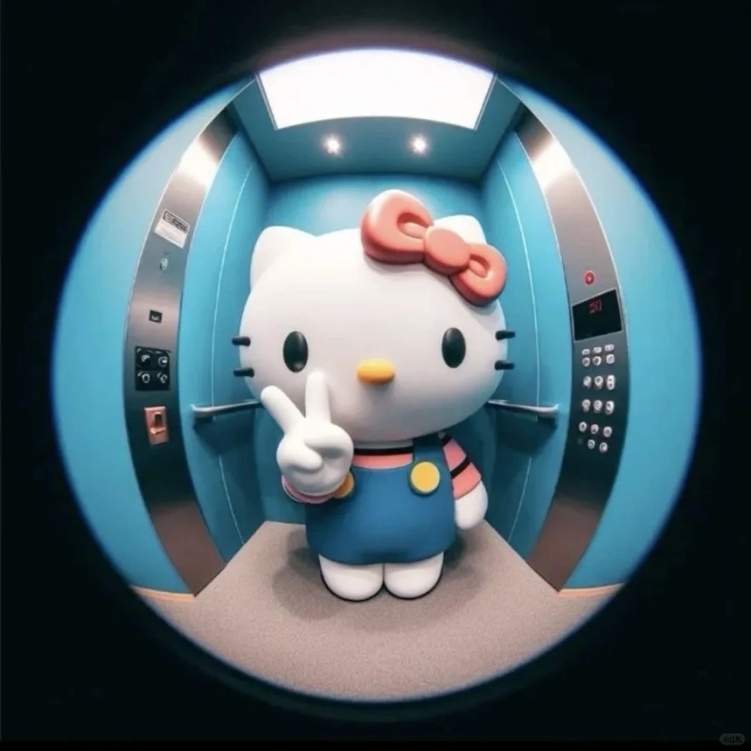 圓形的空間可以讓人聯想到飯店門上的防盜魚眼或是監視器,因此就有網友製作了可愛角色像是透過鏡頭觀看的插圖,與像是透過監視器看到Hello Kitty在電梯中、地鐵上、家門口的視角照,用來當作Apple ID大頭貼超級級酷!下面提供給大家原圖儲存~
