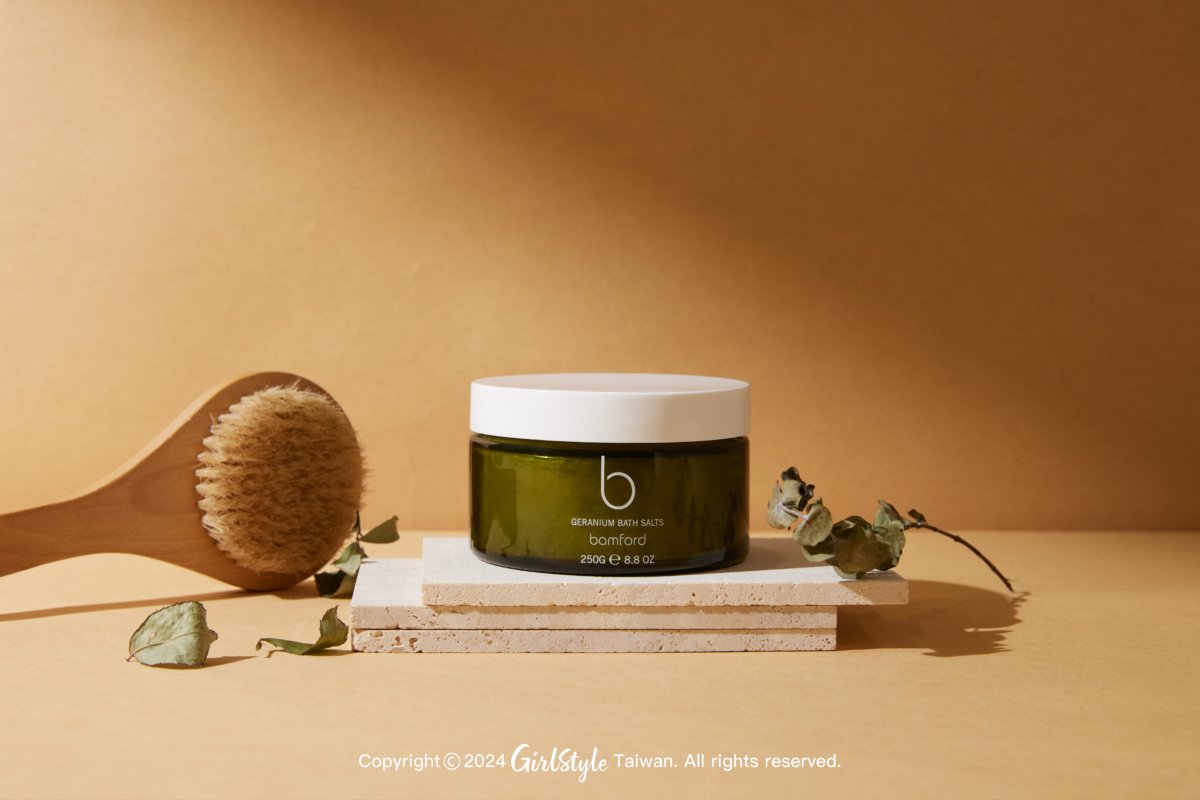 疲憊的一天來一場療癒身心的沐浴時光絕對是莫大的享受,bamford 植萃浴鹽添加埃及天竺葵的草本香調,融合薰衣草、東家豆並點綴了一點胡椒薄荷和尤佳利的清新,為身心靈帶來平衡舒緩。