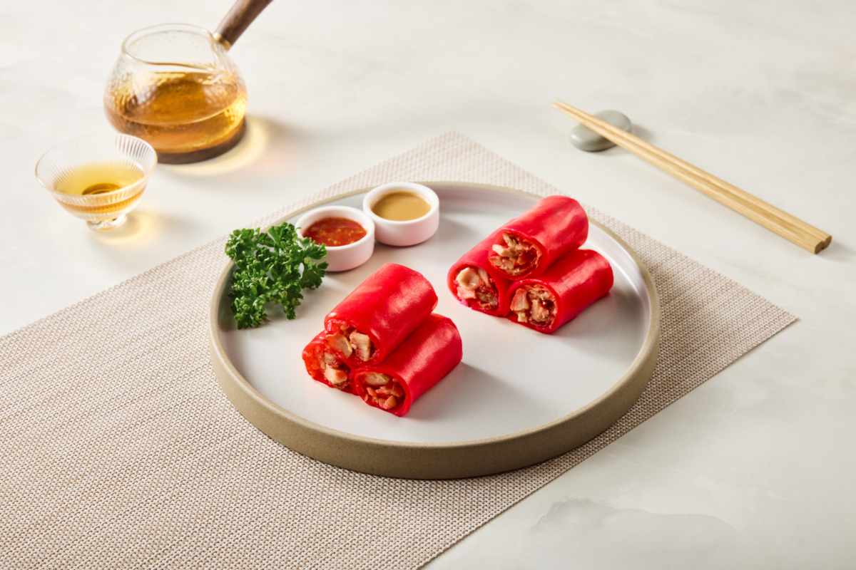 粉紅腸粉取材天然 口感酥脆沾醬濃