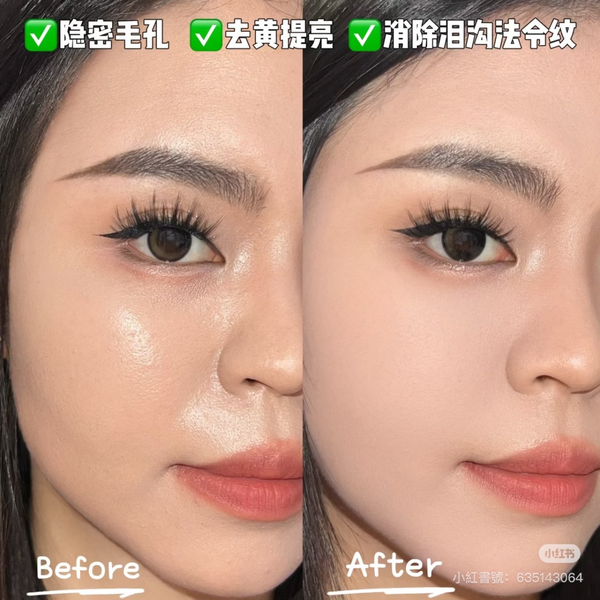 - 提亮膚色:中和偏黃的膚色,讓肌膚看起來更透亮和有光澤,特別適合偏黃或暗沉的膚色,冷色調的肌膚用起來也更有輕透仙氣的效果,輕鬆打造偽素顏。