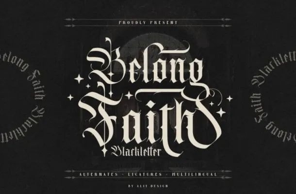 有玩過中古世紀電動遊戲的人,應該都有看過很多次相關的哥德字體(Blackletter)出現在遊戲中吧!誇張華麗的造型充滿奇幻氛圍,設計並設計在許多地方上瞬間可以提升神秘感。不過因為這種特別的字體僅限英文,讓習慣中文的我們在使用上稍微可惜不太常用。