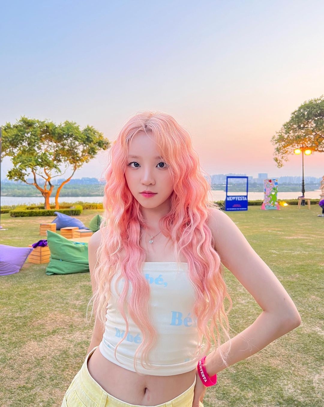 搭配上規則的人魚捲營造出少女般的甜美氣質,特別適合搭配柔和的妝容,讓整體造型更加和諧。成功的駕馭金髮和粉嫩髮色的雨琦也成為許多人心中的淺髮色代表呢!