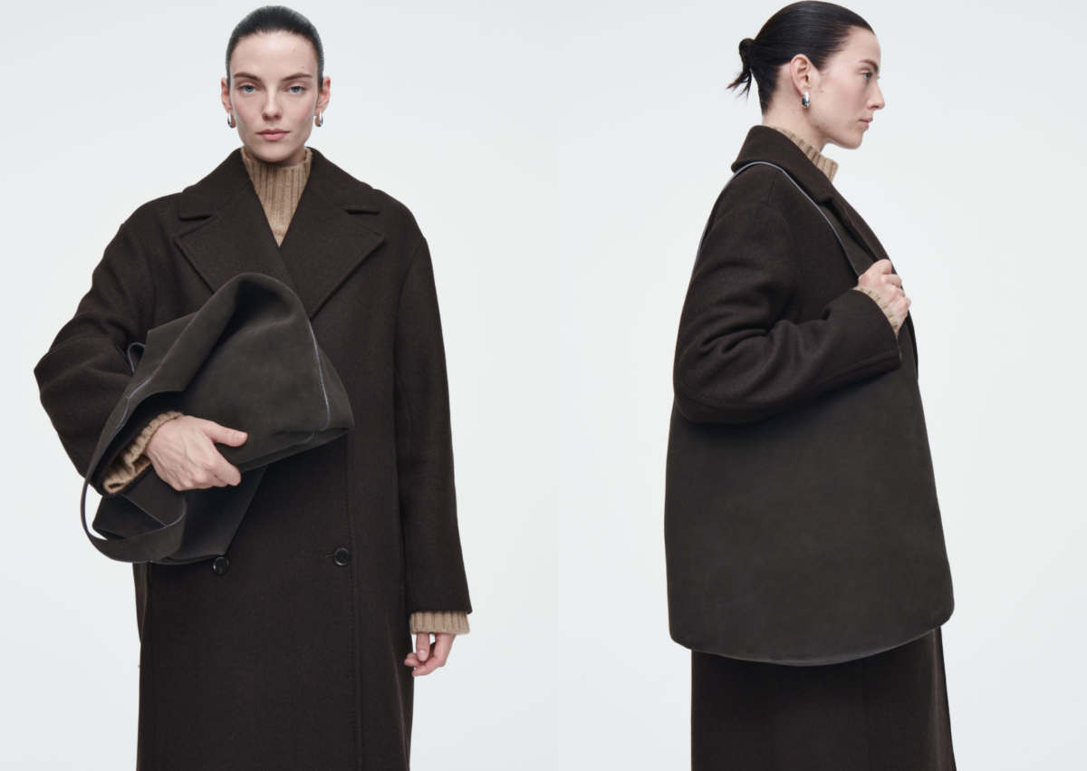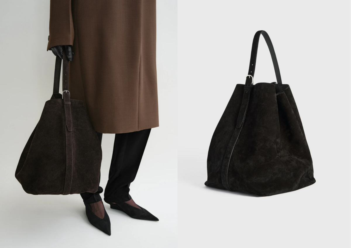 COS 大家不陌生了吧,以極簡主義、現代設計和高品質為主的瑞典時尚品牌,過去也在台北101開設首間實體店,而這顆咖啡色手袋以優質絨面革製成,經過濃郁的濃縮咖啡鞣製色系,形成柔和外型和褶皺,手拿、肩背都可以,秋冬感氛圍滿分。