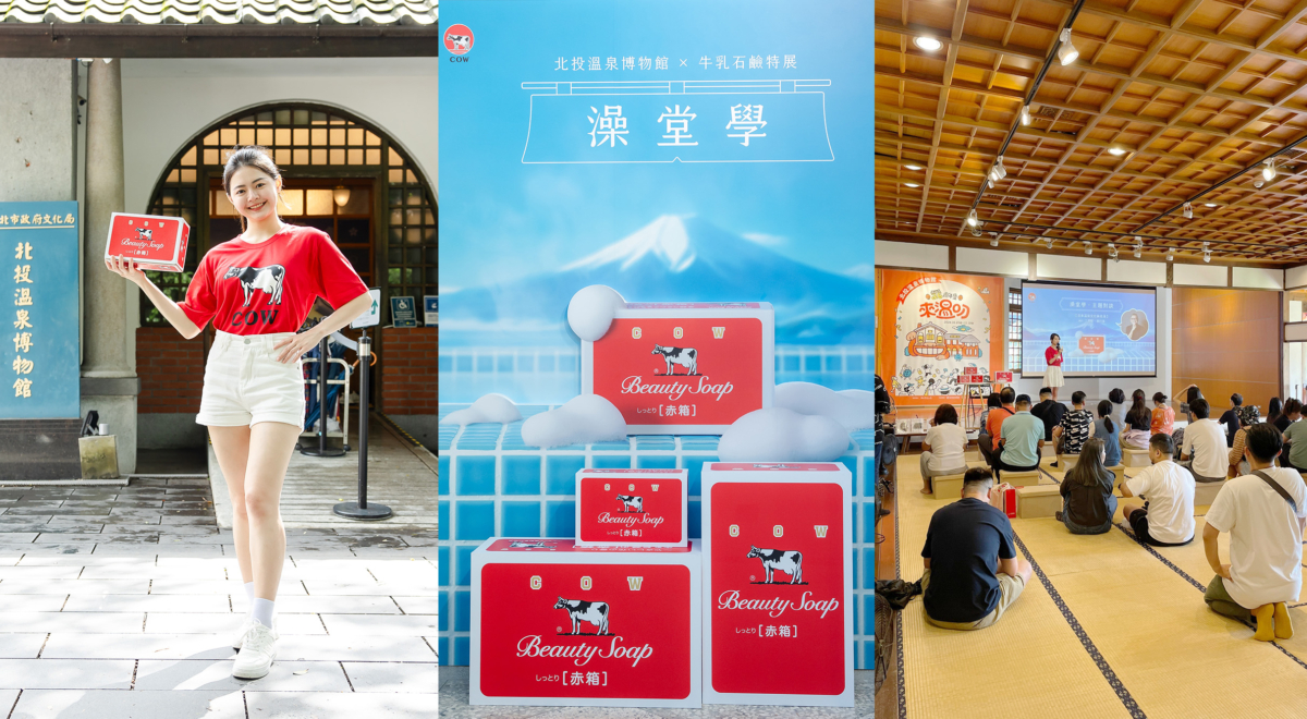日本國民品牌牛乳石鹼COW STYLE成功與北投溫泉博物館攜手合作,推出《澡堂學》特展,展出至11月10日。這場展覽不僅介紹了日本的洗沐習慣,還將最道地的錢湯文化與知識帶到台灣,讓參觀者沉浸在歷史悠久的日式澡堂文化中。