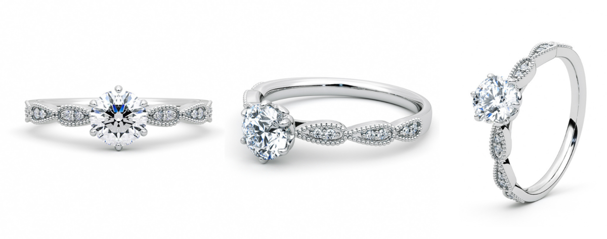 這款主鑽鑲口周圍加上了密鑲小鑽,有著海浪般層層疊疊的概念,放大鑽石的璀璨光芒則象徵了愛情的澎湃,兩側的水滴型鑲嵌與滾珠邊設計,宛如海中漣漪,訴說著溫柔又堅定的愛情故事,每一個細節,都為這枚戒指注入了深海的浪漫,喜歡華麗些的戀人可以選擇這款。