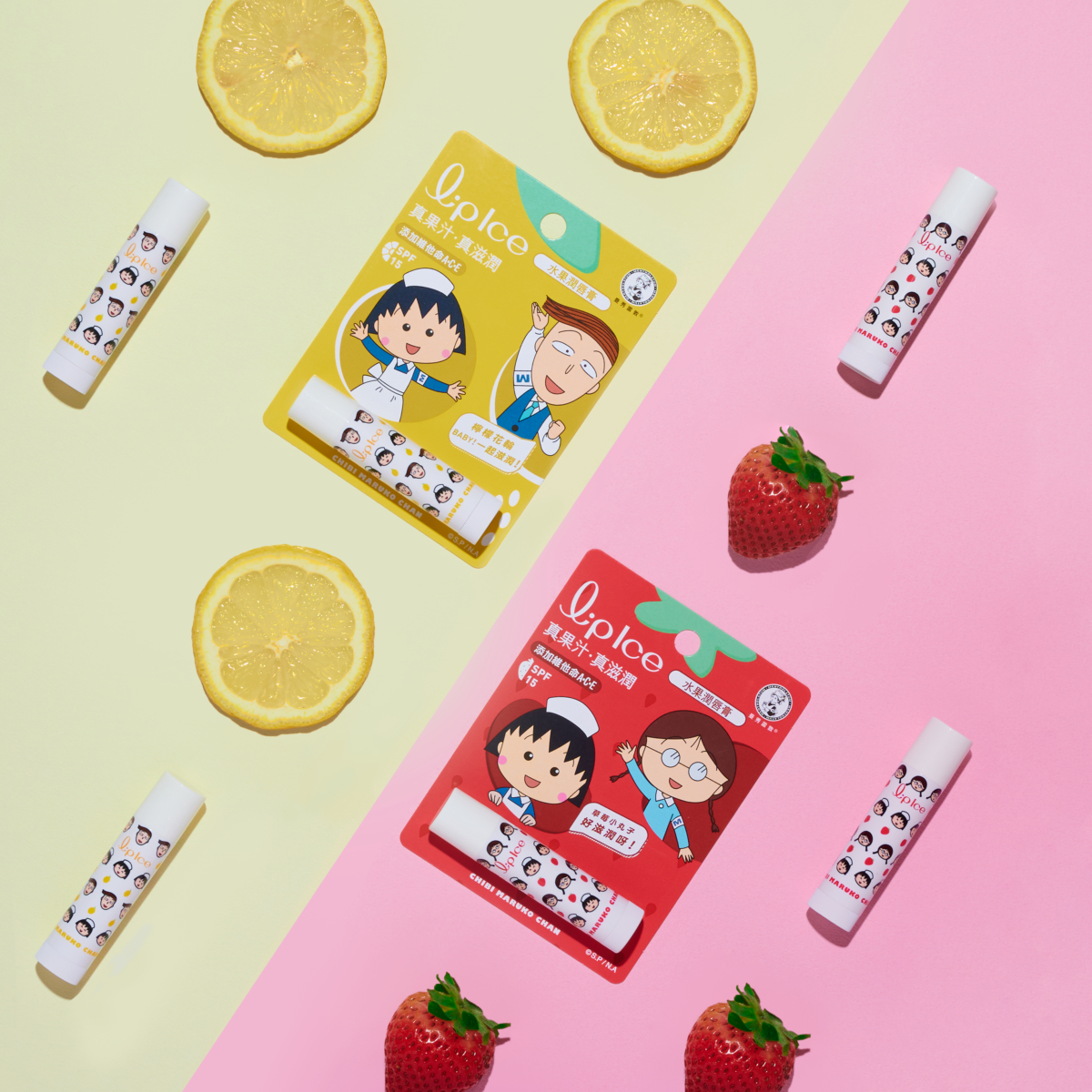 今年曼秀雷敦正式邁入135週年,不只推出復古風格的週年紀念版,更邀請了大家的童年小丸子與好友們化身為可愛的小護士,共同推出的「LipIce水果潤唇膏櫻桃小丸子限定版」,限定版包含「甜蜜草莓」和「清新香檸」兩款口味,以真實果汁添加,輕輕一抹即散發甜美果香,讓雙唇享受充滿新鮮感的滋潤!
