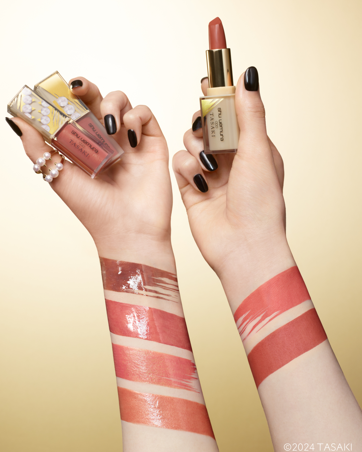 這次「植村秀XTASAKI限量聯名彩妝」選擇以經典色選帶給粉絲們全新的感受!飽和度低、修飾膚色的「奢感霧棕」,以及日常百搭、輕透顯嫩的「優雅霧粉」,完美呼應了珍珠優雅低調及質感百搭的氛圍,換上全新包裝根本是夢幻逸品~