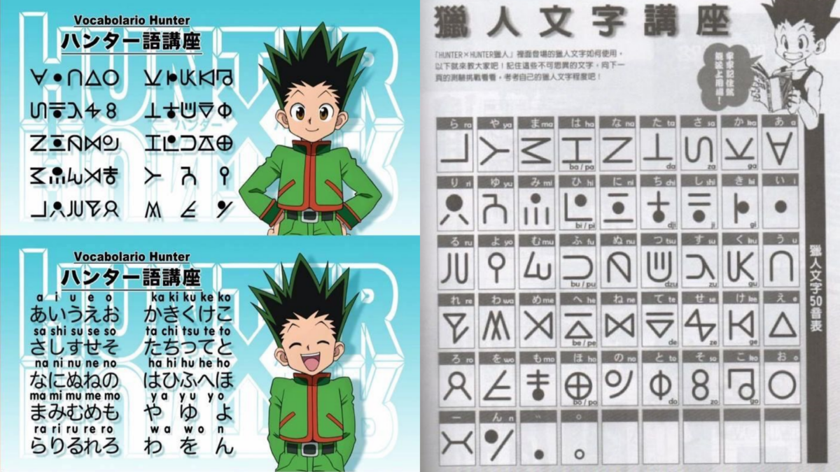 在《獵人》世界中他們擁有自己的文字,為了讓大家能夠真正看懂,在漫畫與新版動畫中都有向粉絲們展現「獵人文字50音」的日文對照教學喔!