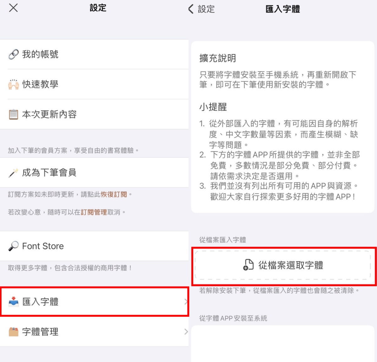 大家可以先在網路上將自己的名字轉換成「片假名」,並推薦下載這款「下筆」App,在裡面匯入剛剛下載檔案名為「hunter.zip」的字體。