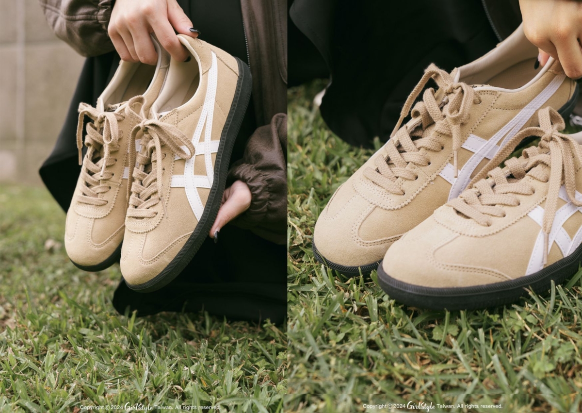 2024 秋冬「麂皮球鞋」推薦二:Onitsuka Tiger 鬼塚虎 TOKUTEN 駝色底白色虎爪紋