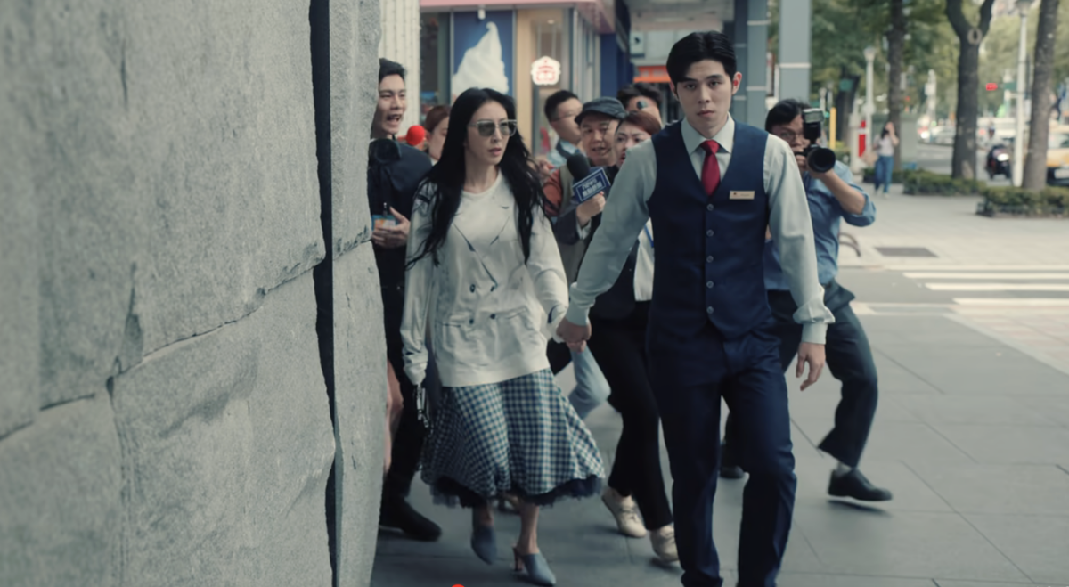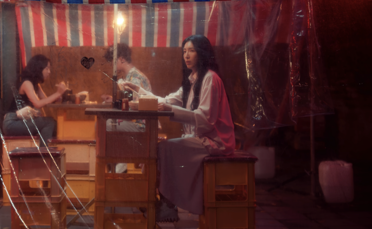 到了後半段的「姐弟戀」,周凡坐在與流氓定情的關東煮小吃店,突然意識到自己是真心喜歡對方時,選擇身穿寬鬆白色襯衫搭配同色系長裙,腳踩一雙運動鞋,呼應了襯衫下擺的抽繩設計,在優雅中帶有一絲運動氣息,非常時髦有型。