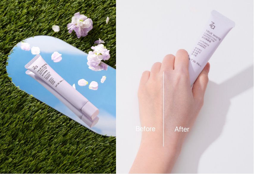 有蠟黃肌困擾的女孩們注意啦~像小編常常覺得自己素顏的膚色偏暗、很沒精神,就會選擇「透亮紫」來修飾暗沈的膚色,提亮膚色的同時打造天生清透美肌的妝感!再加上Za首創的「美肌濾鏡科技」,讓底妝效果更持久~