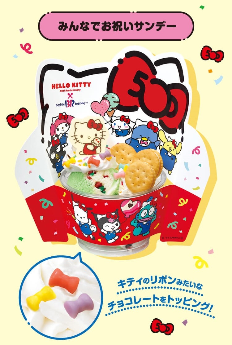 日本31冰淇淋聯名三麗鷗!推出超繽紛「50週年蝴蝶結聖代」,Hello Kitty、酷洛米可愛周邊免費送