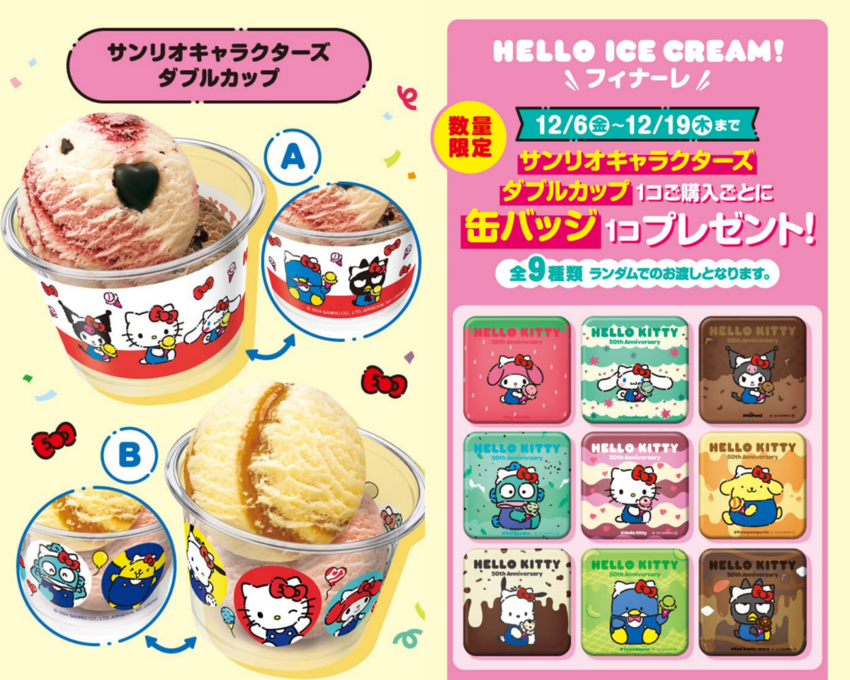 日本31冰淇淋聯名三麗鷗「雙球杯」、「限定徽章」