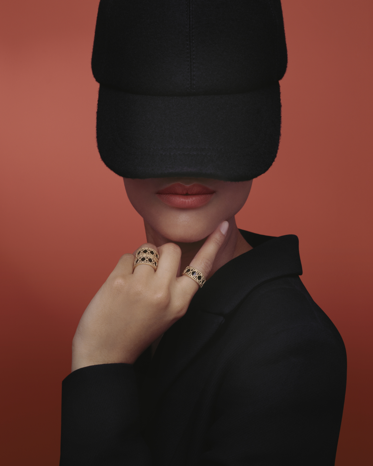 迪奧My Dior 系列將經典籐格紋圖案(Cannage)變成如絲帶般金色交織線條,每一道線條都經過工匠的精心雕琢並交織在黑色彩漆的基底上,18K金的溫潤光澤與黑色漆面的深邃神秘,共同譜寫出優雅的視覺饗宴。既有意義又百搭,很值得收藏。
