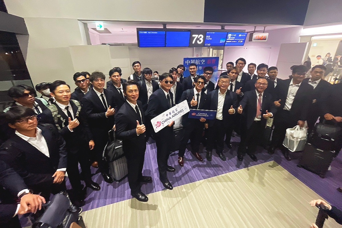 冠軍英雄榮耀返台!球員開心與「台灣尚勇」頭墊紙合照,桃園機場獻上「水門禮儀式」超壯觀
