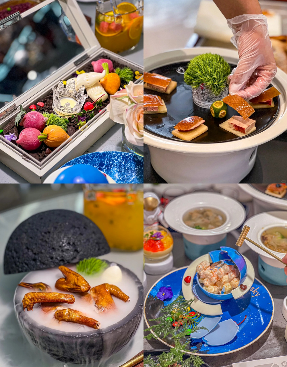 不只是餐廳裝潢,就連餐點都超浮誇~~3號倉庫每項餐點都是透過精心設計與烹煮,從擺盤裝飾到食用方法誇張華麗到不行、創意感滿滿,就算隨便拍照也都張張出片~根本像在吃高級國宴餐!