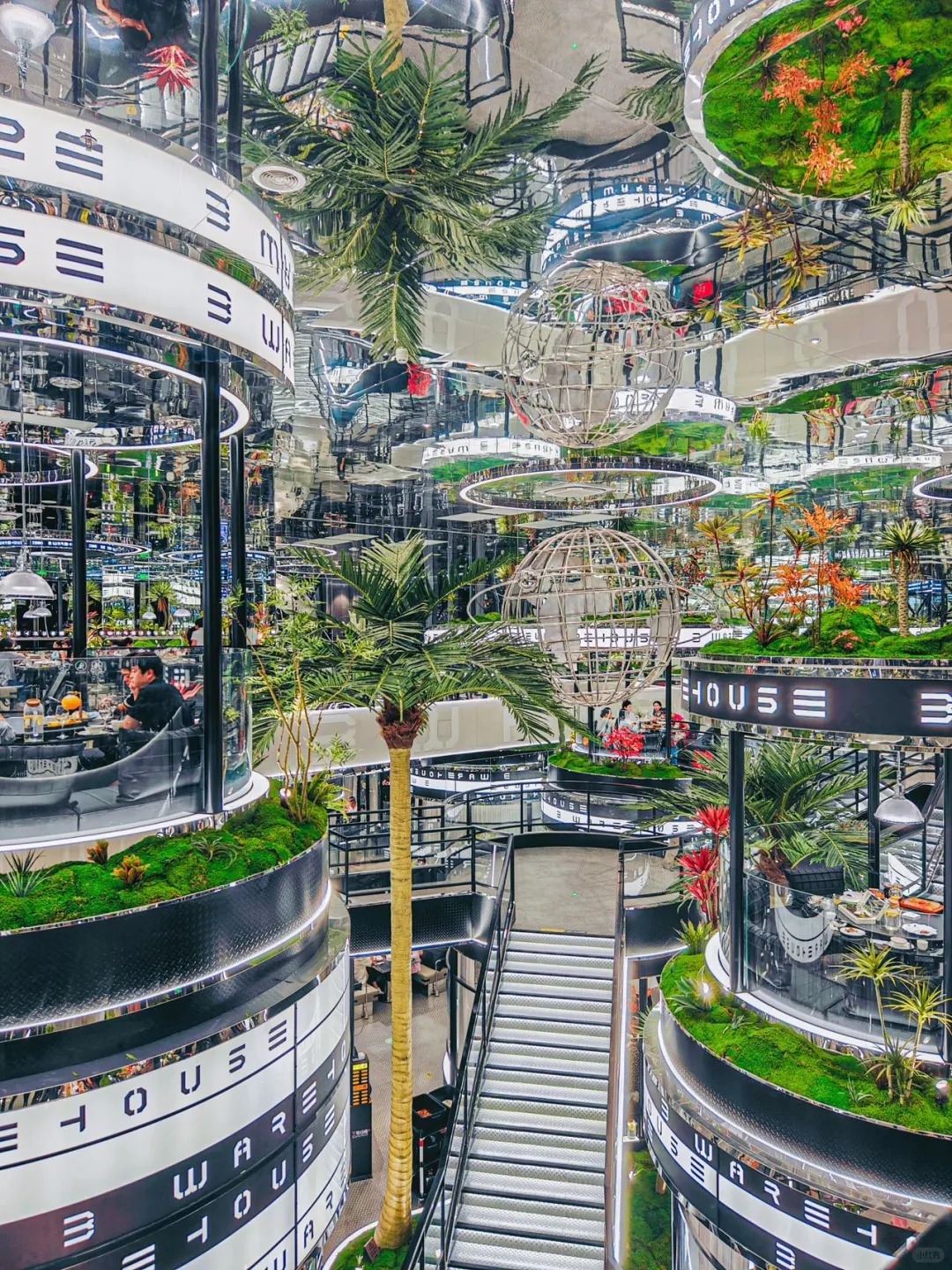 特別的獨立包廂也是3號倉庫餐廳的特色,每間都以圓型作為包廂造型,有懸空在走道邊、坐落在中庭中往上堆疊;半鏤空、整面落地玻璃太空艙的樣式等等,華麗浮誇的設計讓人瞬間置身於新世界。