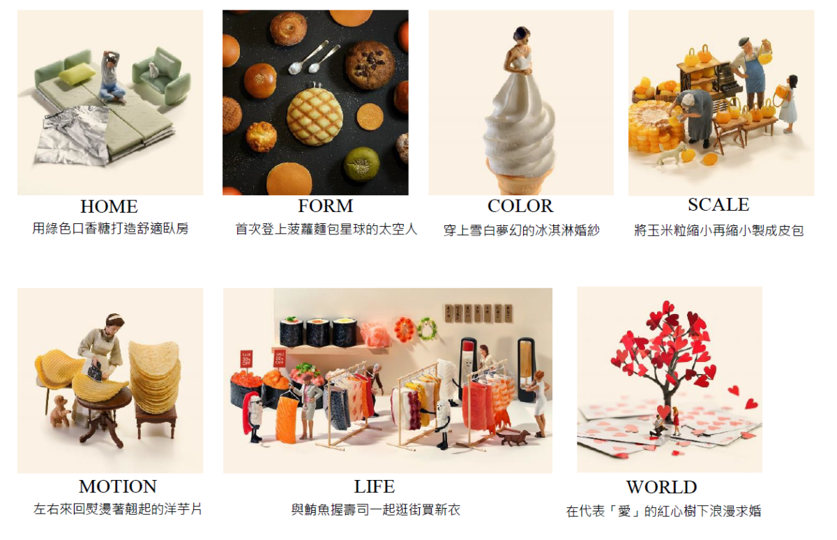 繼2019年的「微型展2.0」之後,今年三度來台,以《田中達也特展-大師眼中的微型组合》再次向粉絲發表超多最新作品!不管是食物、還是生活用品,擁有源源不絕點子的他總能用不同角度去思考,產生不同靈感製作出好玩又精緻的模型。 這次特展將分為HOME(家)、FORM(形狀)、COLOR(顏色)、SCALE(比例)、MOTION(動態變化)、LIFE(生命力)、WORLD(世界觀)7大主題,分別從「生活、形態、色彩、大小差異、動作」等各種新視角看待熟悉的事物,將天馬行空的想像化為現實。