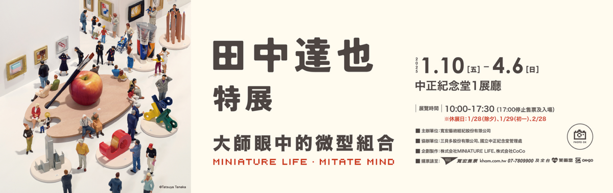 迷你控注意!擁有IG近400萬粉絲追蹤、海內外巡迴展出突破250萬觀賞人次的日本「超人氣微型大師」田中達也又要來台了!《田中達也特展》這次將在2025年1月10日~2025年4月6日舉辦在國立中正紀念堂,帶來逾160件全新創作、50件立體模型。超多驚奇有趣的微縮藝術品第三度登陸台灣,喜歡小東西的朋友一定要去看!