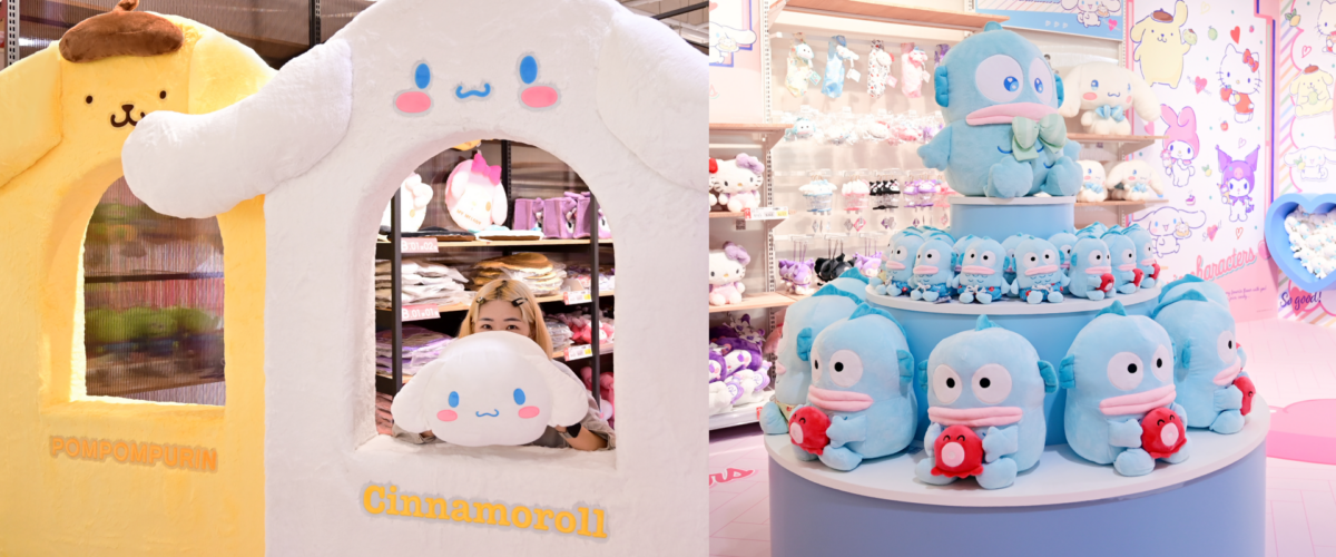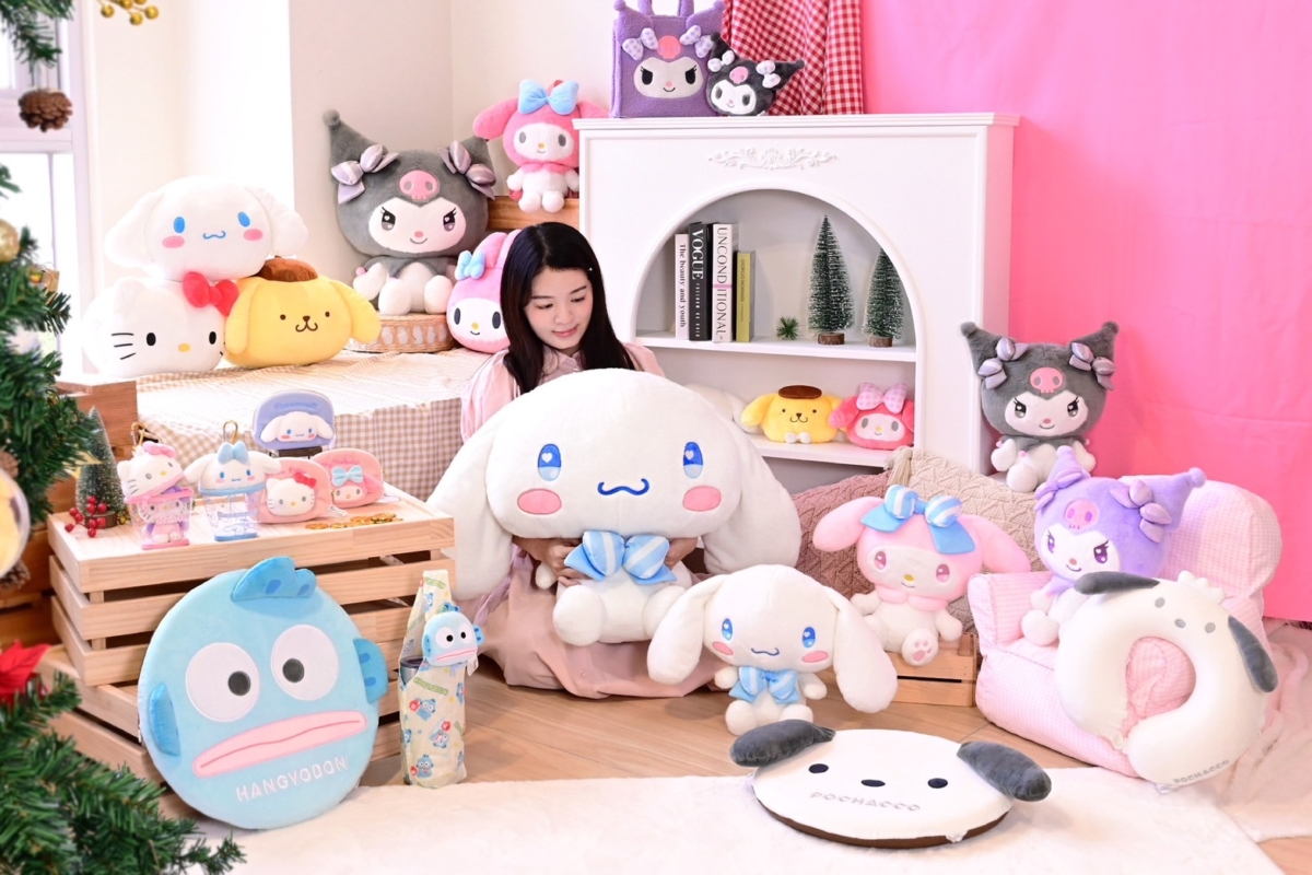 最讓人期待的當然就是三麗鷗新品區~超華麗的商品展區到處都被毛絨絨的角色們包圍♡從入口處就可以看見巨大酷洛米坐在門口,兩旁還有布丁狗、大耳狗造型的絨毛挖空拍照板,粉絲可以盡情拍照打卡~現場還有200公分美樂蒂、酷洛米毛絨絨大型娃娃機可以遊玩喔!
