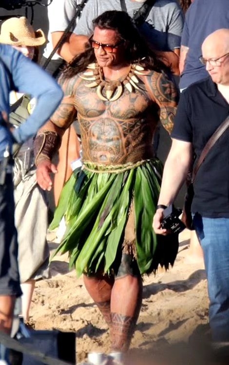 本色出演!巨石強森《海洋奇緣》真人版拍攝現場流出!草裙+大肌肉超還原扮演「毛伊」