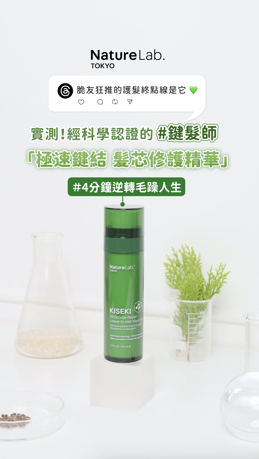 實測!經科學認證的#鍵髮師,東京科研髮『極速鍵結髮芯修護精華』,4分鐘逆轉毛躁人生