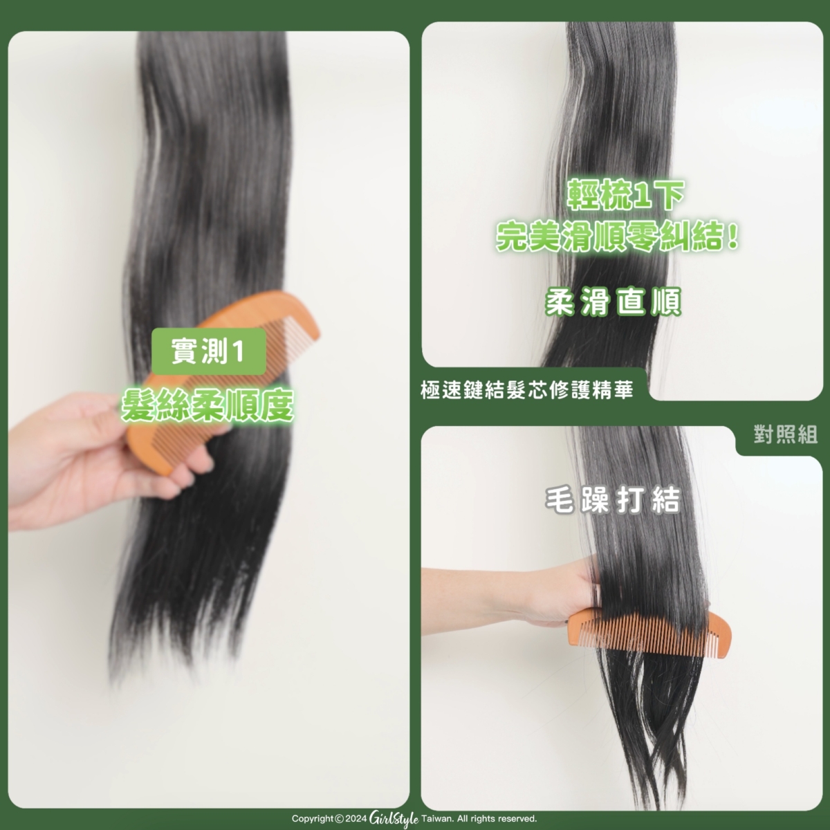 實測1. 髮絲柔順度