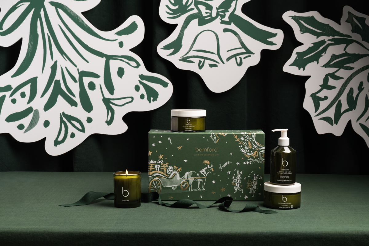 2024年的聖誕季bamford以英式花園為靈感,攜手藝術家Nina Fuga繪製專屬插畫,在禮盒及包裝上增添靜謐而生機盎然的冬日景致,也讓送禮更有儀式感~