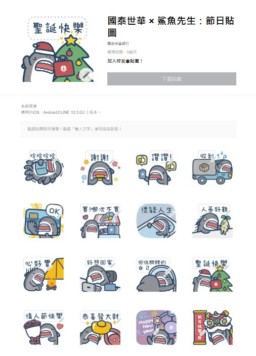 2024免費聖誕Line貼圖:國泰世華 x 鯊魚先生:節日貼圖