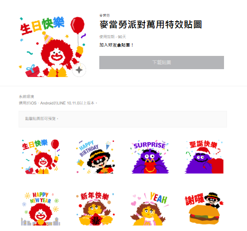 2024免費聖誕Line貼圖:麥當勞派對萬用特效貼圖
