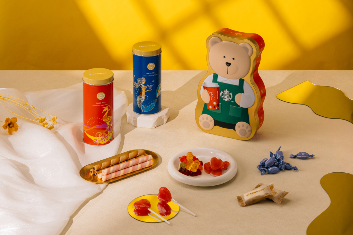 吃甜甜、說好話、過好年! 年節期間總少不了桌上放盒糖果招待來訪的親朋好友,今年星巴克以超人氣熊夥伴Bearista為造型,全新推出「熊好運糖果罐」來迎賓,內含5種不同風味及口感的糖果,有來自西班牙的小熊軟糖以及草莓心型軟糖、義大利的藍莓風味水果糖、荷蘭櫻桃風味愛心棒棒糖,和台灣在地製造蔓越莓夏威夷豆牛軋糖。身著星巴克經典綠圍裙熊夥伴,手持年節亮眼紅金色系設計咖啡杯賀新年,要為所有人送上最好運的祝福。