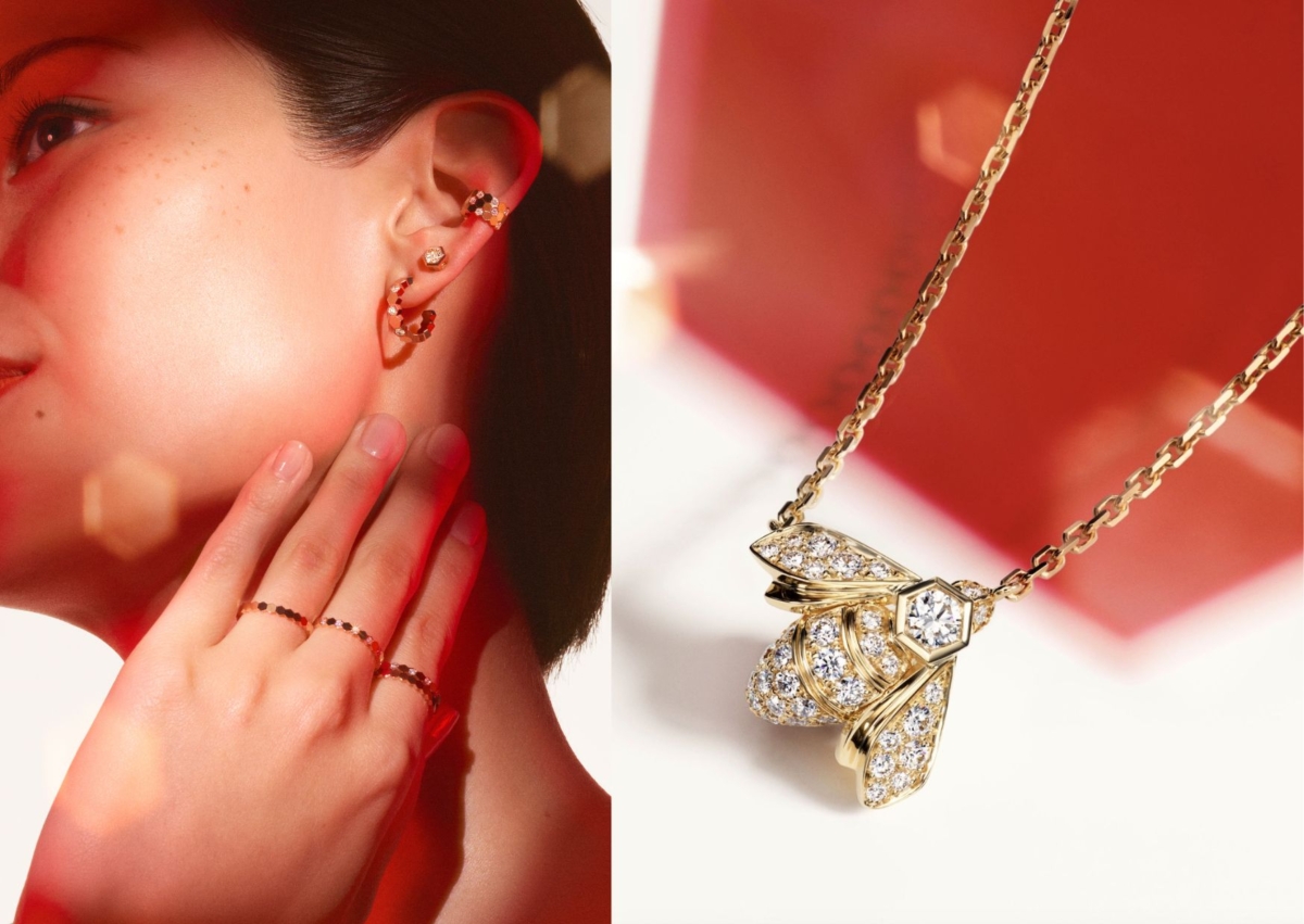 隨著新春的鐘聲即將敲響,Chaumet 選擇將重點放在耳環上,耳環疊戴作為近來的時尚潮流,透過不同尺寸、款式的耳環及耳骨夾搭配,增加造型層次又能展現個人風格。最標誌性的 Bee My Love 系列從自然主義中汲取靈感,以現代手法重新演繹對拿破崙皇室別具深意的蜜蜂圖騰,玩味幾何蜂巢造型和具象化的蜜蜂在珠寶上姿意綻放!